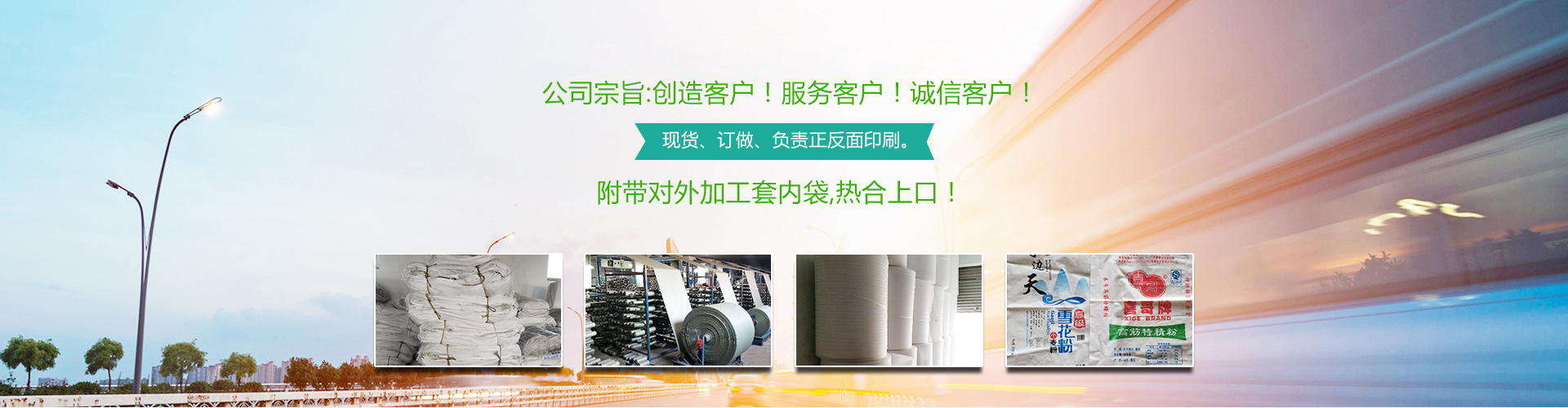 本公司常年生產(chǎn): 編織袋、彩膜、食品袋、集裝袋、飼料袋、化肥袋、水泥袋、化工袋、普危包裝袋、坯布專用內(nèi)袋、包皮、印染廠整裝專用包裝、有現(xiàn)貨、也訂做、負(fù)責(zé)正反面印刷。附帶對外加工套內(nèi)袋,熱合上口!聯(lián)系人:王經(jīng)理。